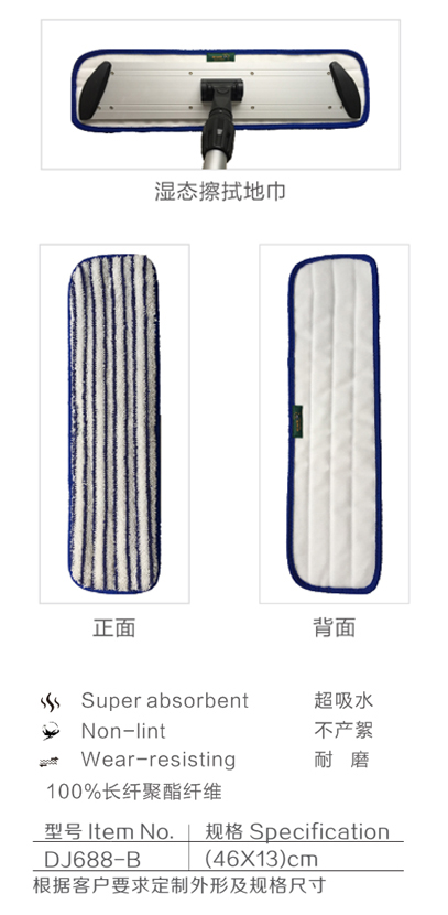 醫(yī)用擦拭地巾整體區(qū)域采用長(zhǎng)纖聚酯纖維材料,用于醫(yī)療院所環(huán)境清潔擦拭、手術(shù)室地面吸液等