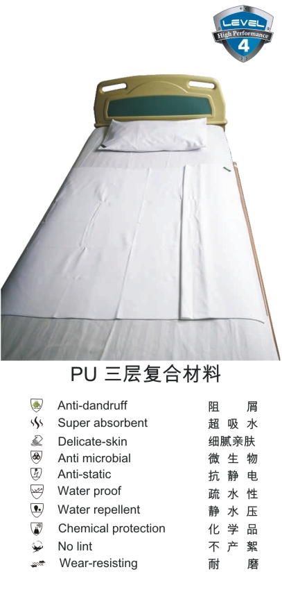 防護(hù)病床系列整體區(qū)域采用FH-PU高防護(hù)功能材料,用于病床中單