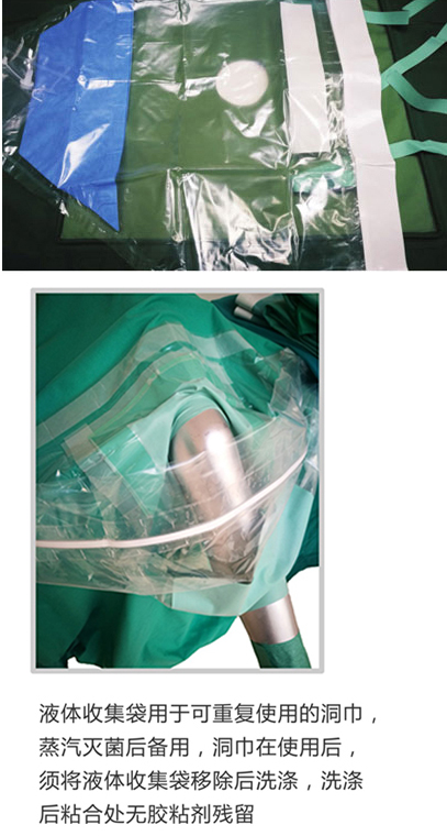 液體收集袋用于可重復(fù)使用的洞巾,蒸汽滅菌后備用,洞巾在使用后,須將液體收集袋移除后洗滌,洗滌后粘合處無膠粘劑殘留