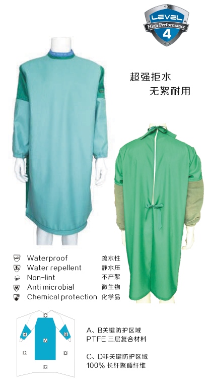 隔離衣在醫(yī)療機構(gòu)適合各科室即有高防護需要的使用環(huán)境。隔離衣A、B為關(guān)鍵區(qū)域采用FH-PTFE高防護材料C、D為非關(guān)鍵區(qū)域采用PS-BZ-C標準防護材料,科室:消毒供應中心、內(nèi)鏡室......(清洗器械專用)