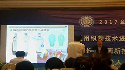 2017年8月29日下午,在會議中的學(xué)術(shù)討論環(huán)節(jié),胡國慶教授進(jìn)行了名為《醫(yī)用織物使用管理和技術(shù)進(jìn)展》的主題演講。演講中,胡教授主要從醫(yī)護(hù)工作服、手術(shù)衣和鋪單、隔離衣、醫(yī)院床上用品、紡織品包裝材料、抹布和地巾的使用管理和醫(yī)用織物清洗消毒和技術(shù)進(jìn)展等七個方面進(jìn)行講解。